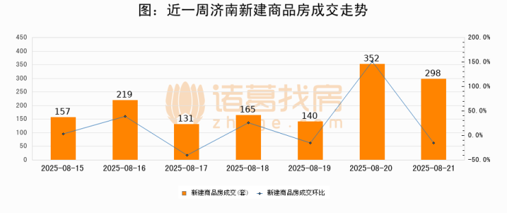 【济南成交日报】08月21日新房成交298套;涨价房源42套