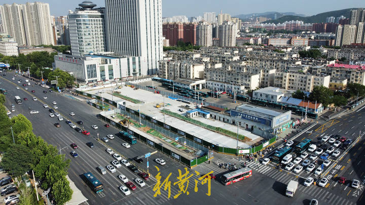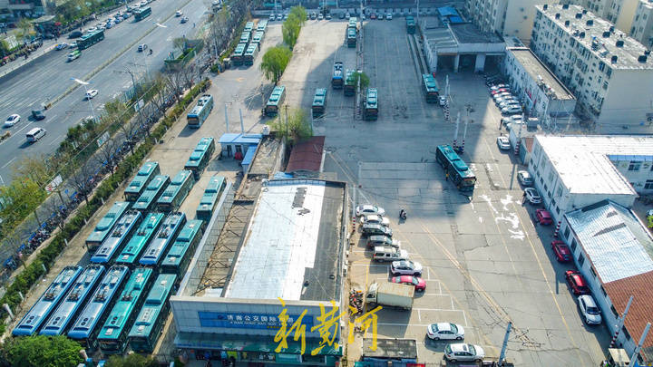 在高空俯瞰,原来的公交停车场已经纳入封闭施工范围内,原来在此停靠的公交车均转移至其他停车场。(新黄河)