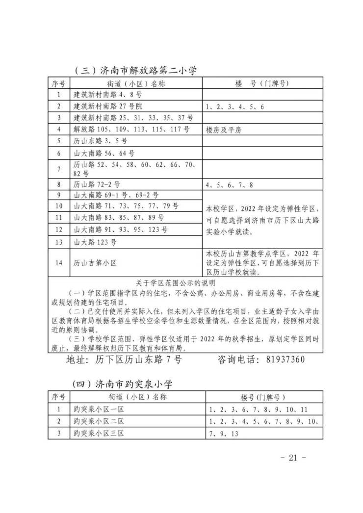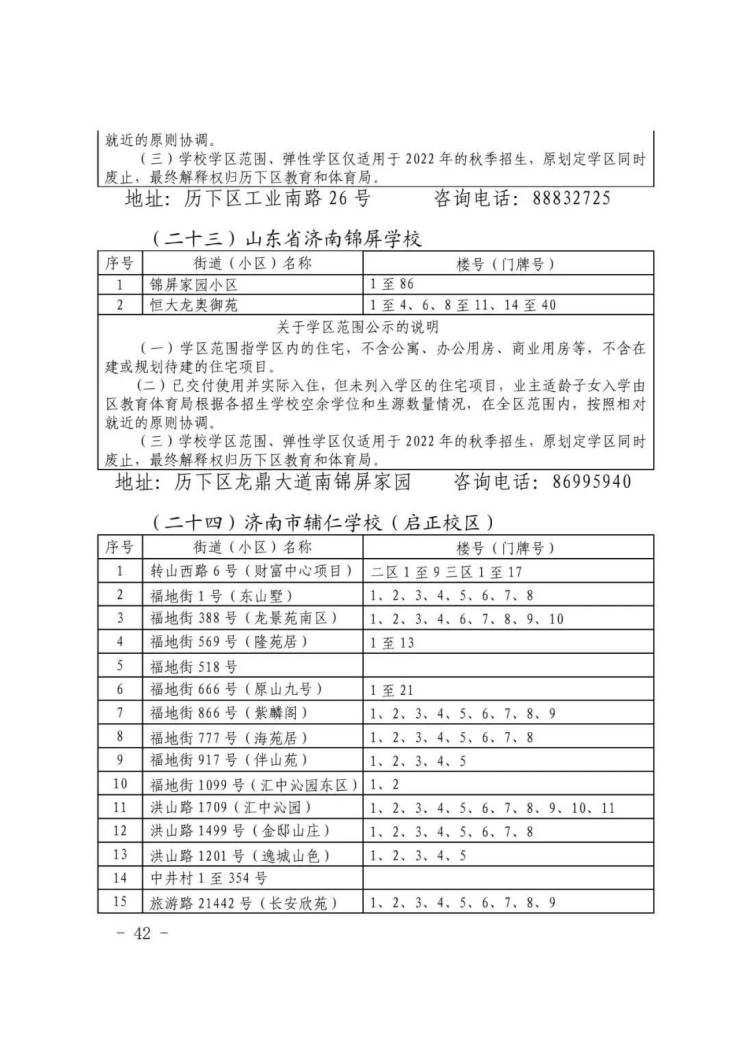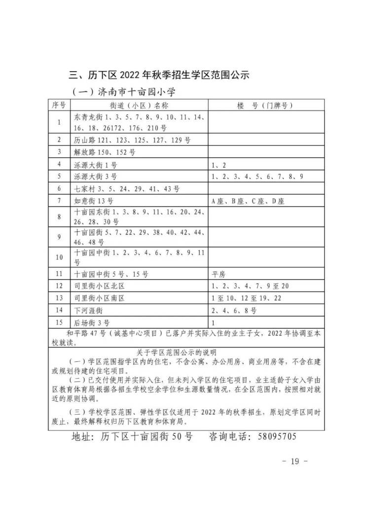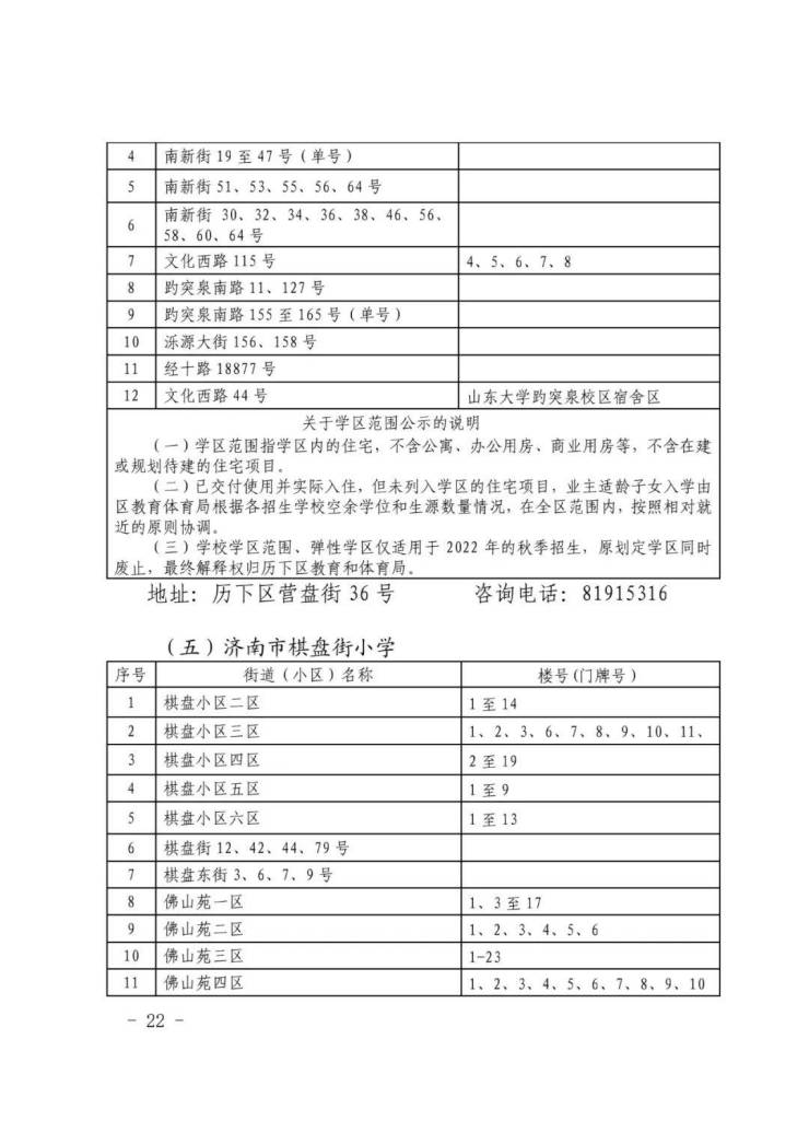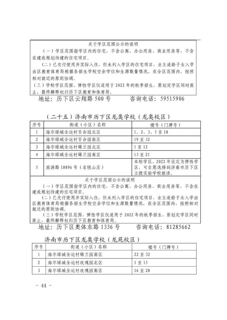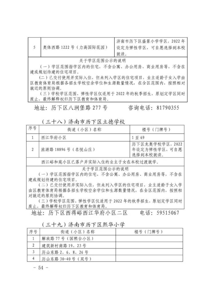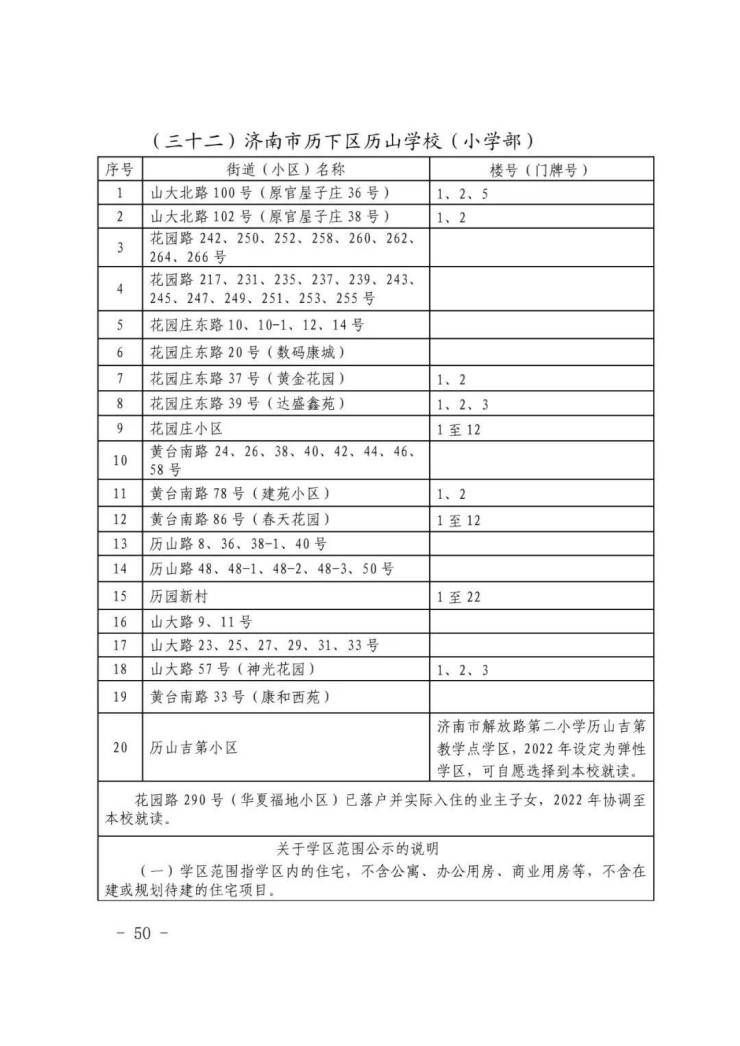 2022济南历下区学区划分。对口初中,小学范围,均在其中。