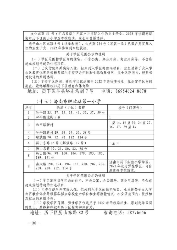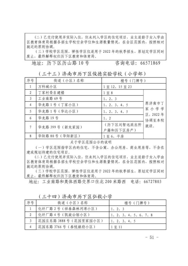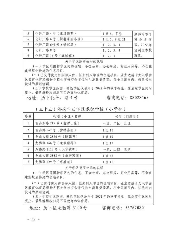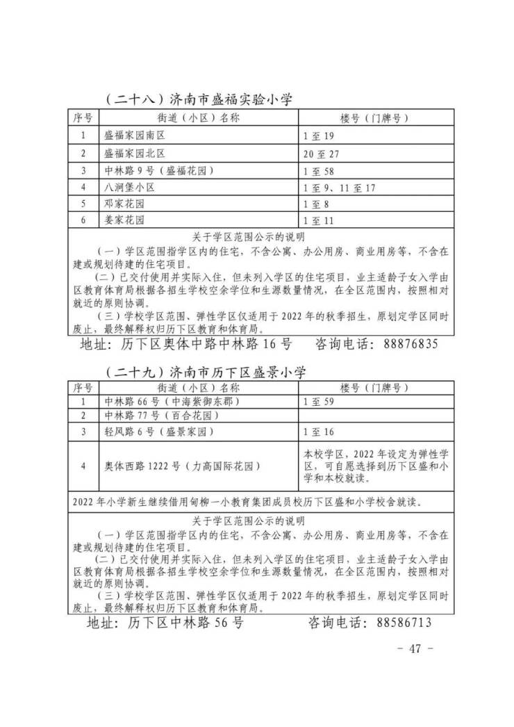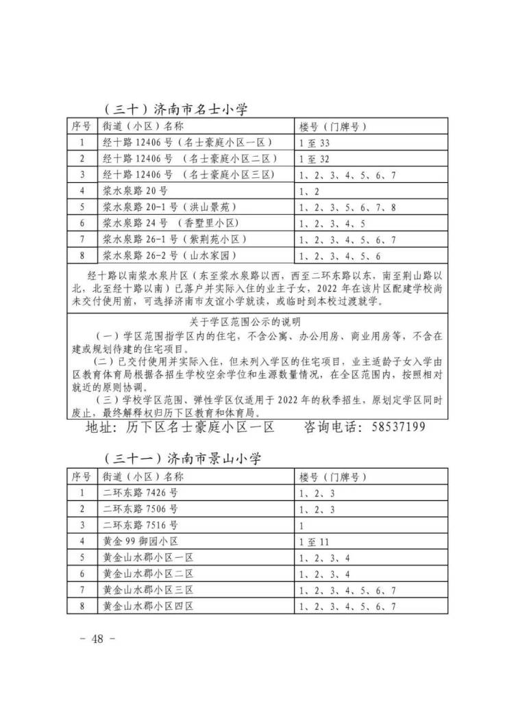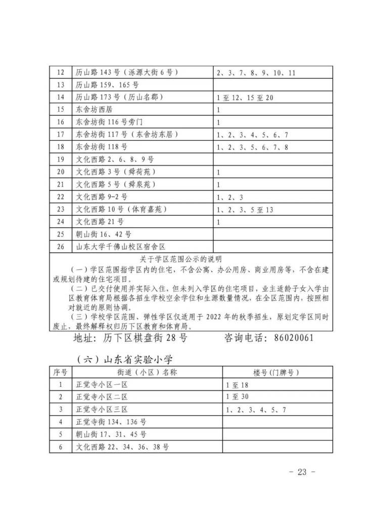 2022济南历下区学区划分。对口初中,小学范围,均在其中。