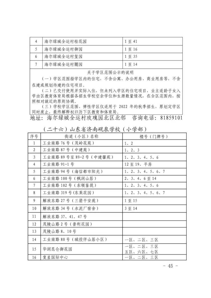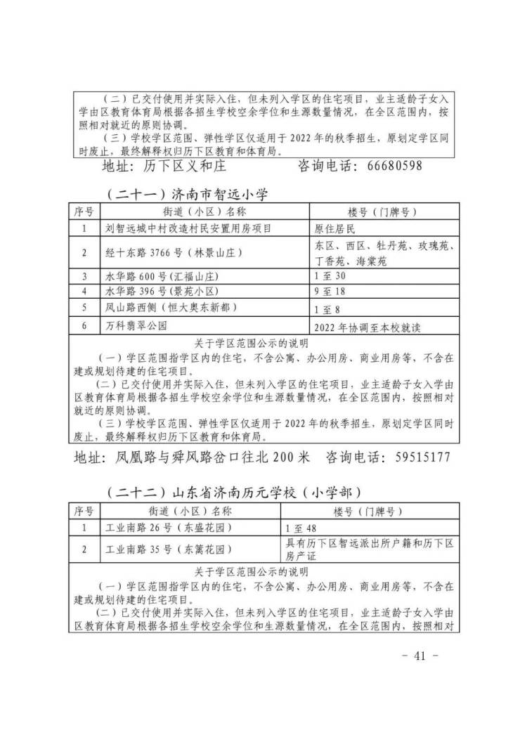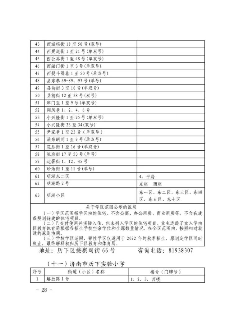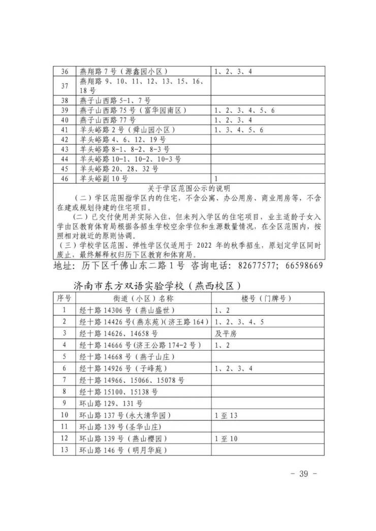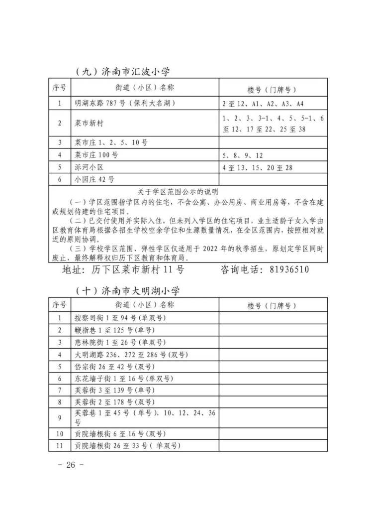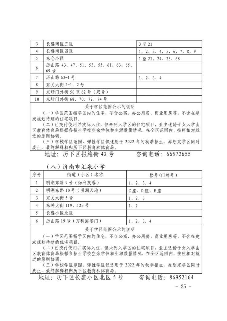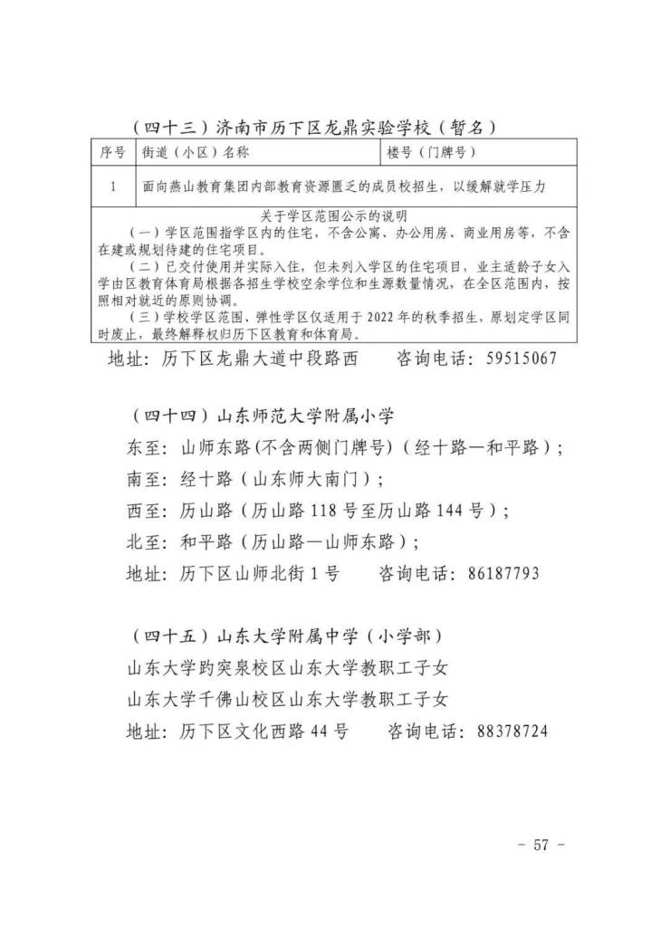 2022济南历下区学区划分。对口初中,小学范围,均在其中。