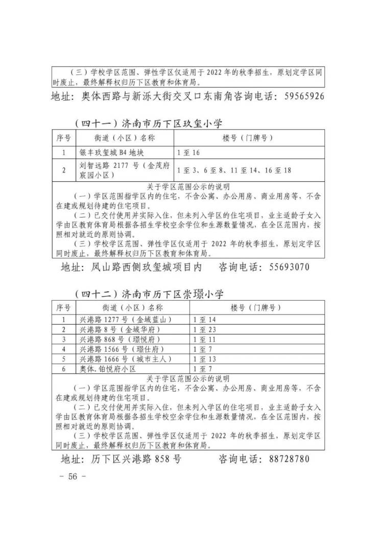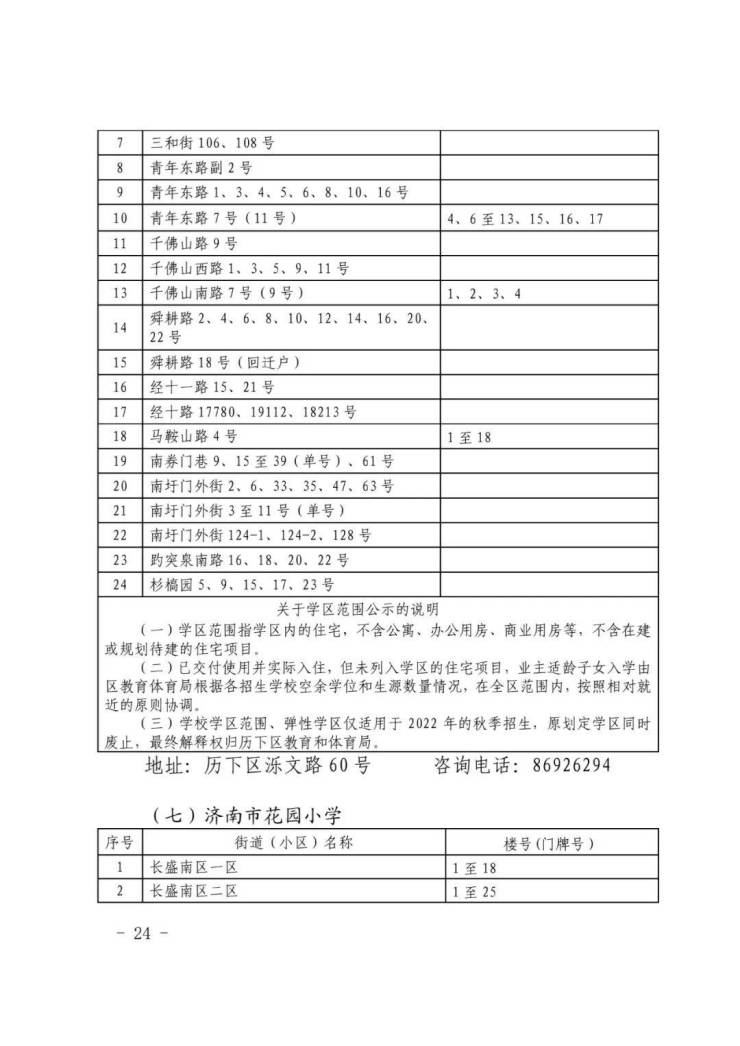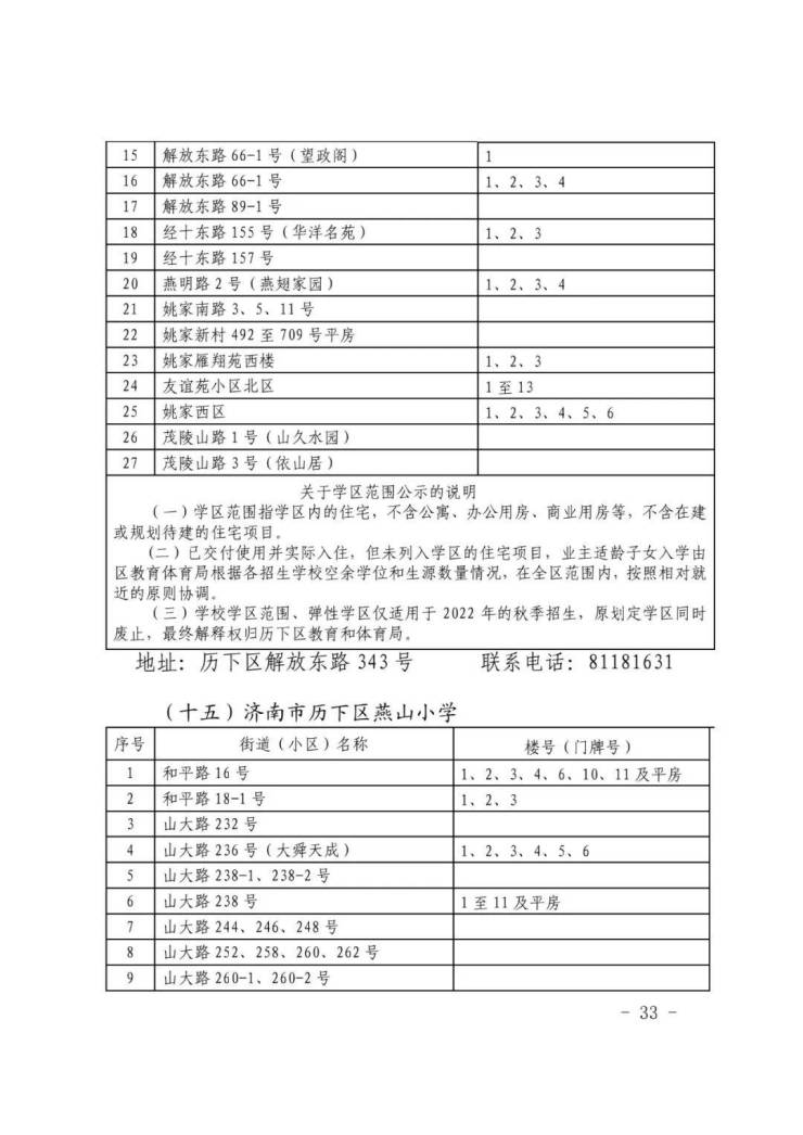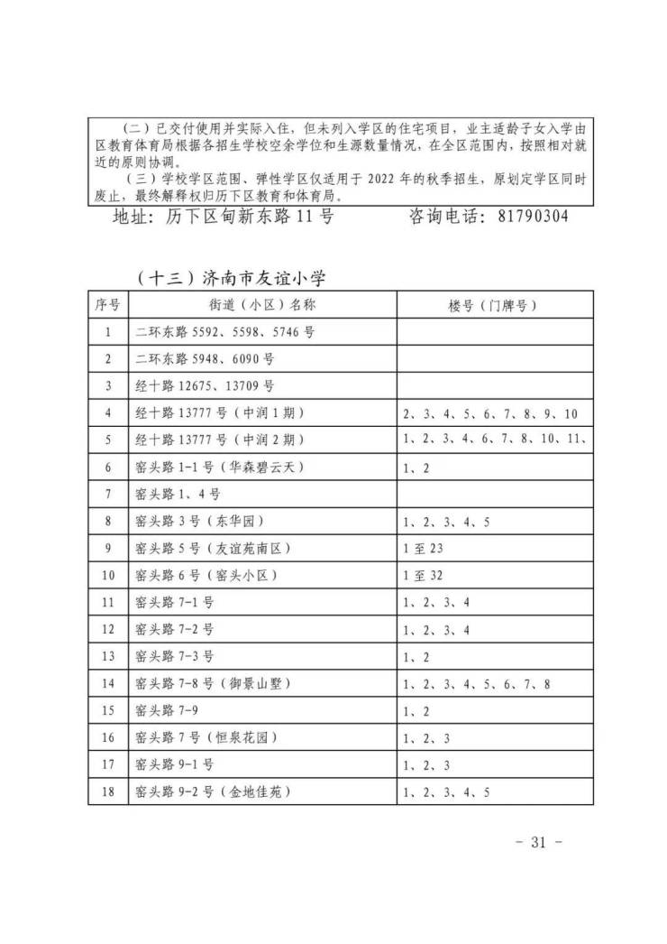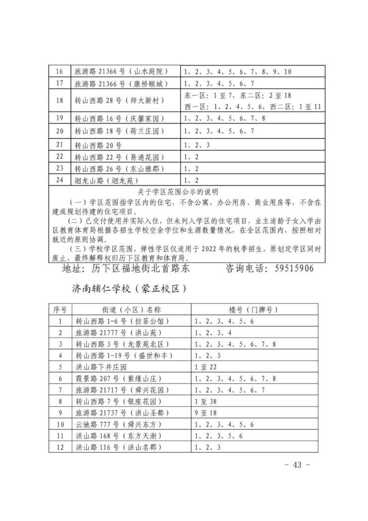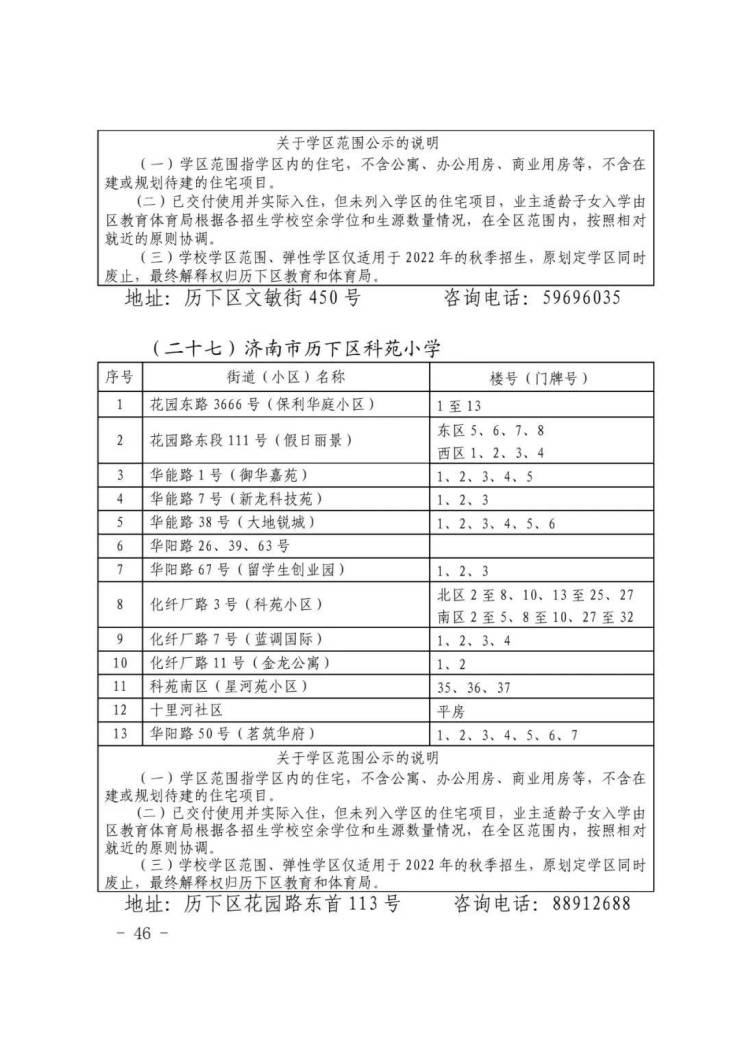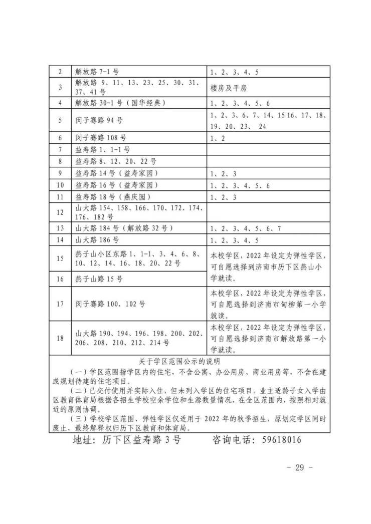 2022济南历下区学区划分。对口初中,小学范围,均在其中。