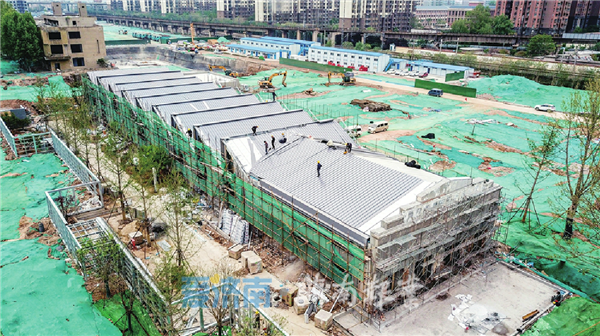 4月20日,在东工商河路东侧的原济南国棉四厂,片区拆迁过程中有一座原址保留的老厂房,从今年3月初开始进行整体修缮,原来锯齿状屋顶的旧瓦全部拆除,四面墙体进行加固之后,重新安装了金属屋顶和透明采光窗,虽然更换了新的装饰材料和部分建筑构件,但依然保持着老厂房原有的风貌。下一步老厂房内部进行装修后将作为商业展示中心向市民开放。