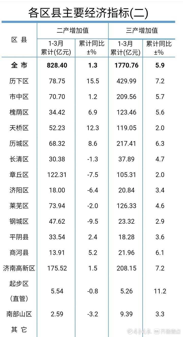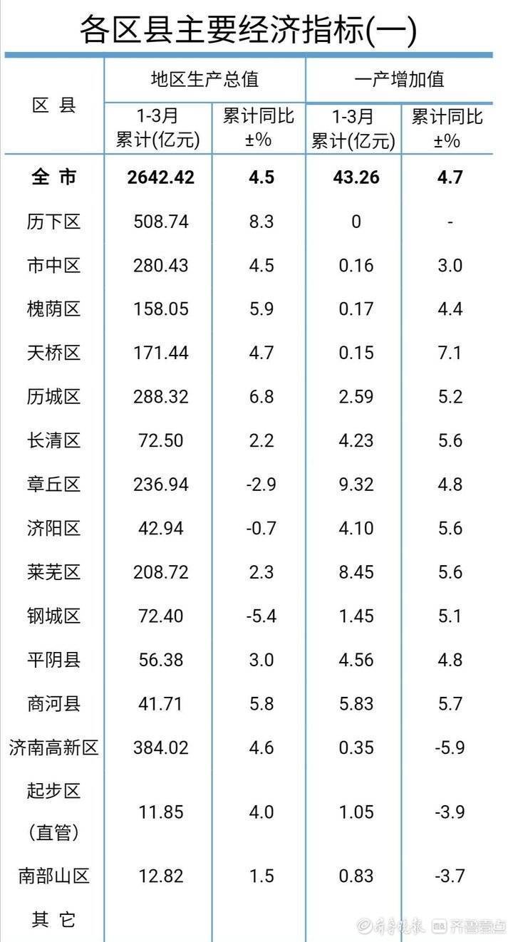 济南各区县一季度GDP出炉,历下、高新、历城占据前三