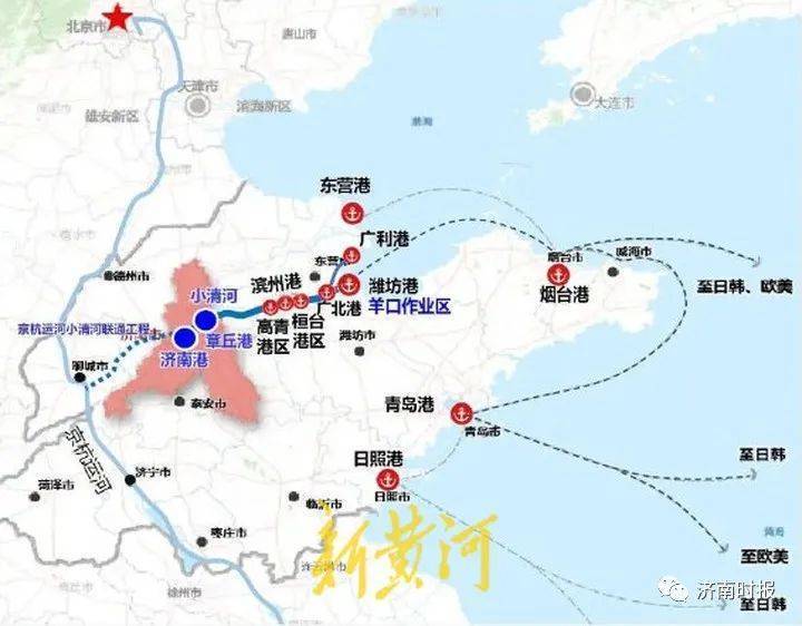 小清河复航工程与京杭大运河—小清河连通工程示意图