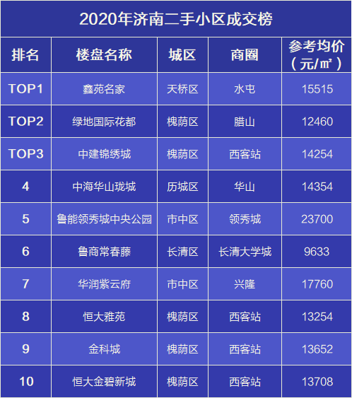 盘点2020年度成交榜单,济南二手房最热门商圈在哪里