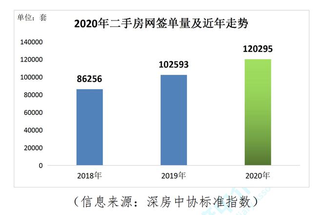 根据深房中协统计的二手房网签数据分析,2020年全年,深圳二手房网签(含自助)120295套,与2019年的数据(102593套)相比高出17.3%。如剔除自助网签的部分,2020年网签量更是创下自2016年有统计数据以来的新高。