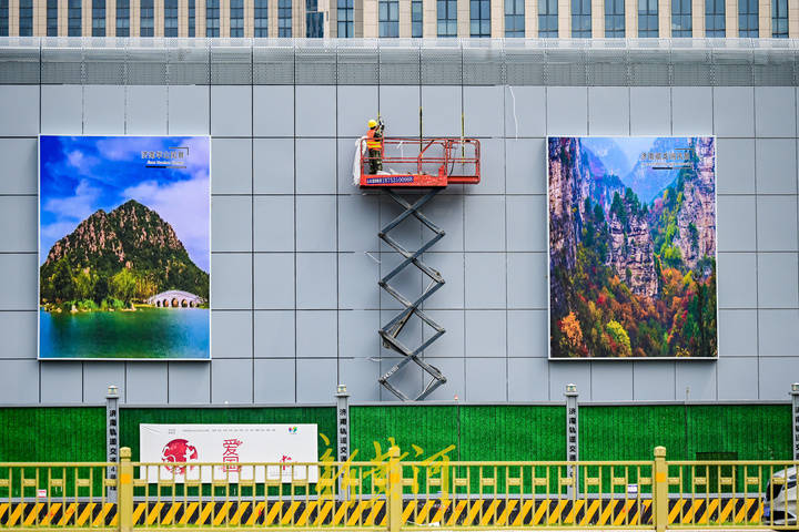 6月28日,在济南经十路的舜华路和奥体西路附近,建设在地铁工地上方的防尘隔音罩棚基本建成。防尘隔音罩棚均采用钢架结构,外层安装有隔离板材和透明采光窗,同时安装上了地铁站点的站名和泉城风景画,让防尘隔音罩棚成为一道风景线。