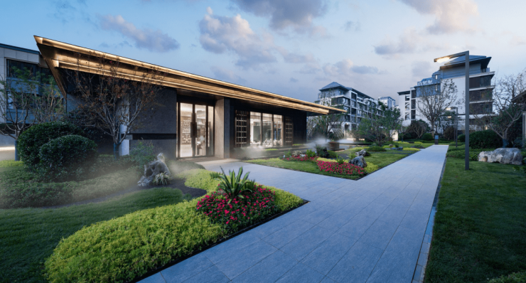 龙湖·九里熙上采用现代典雅的设计风格,外立面采用三段式的设计手法,屋顶设计飘檐,体现建筑的轻盈感,同时寓意业主事业腾飞。