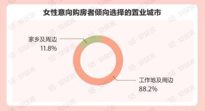 58同城、安居客调研显示,与男性购房者相比,更多女性愿意留在工作地买房,选择在工作地及周边城市购房的女性购房者占比88.2%,高于同时期的男性购房者占比。