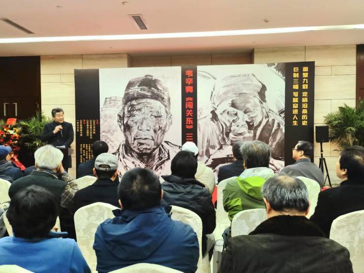 11月11日上午10:30,著名艺术家韦辛夷《闯关东》三部曲作品展在山东新闻美术馆(大众传媒大厦四楼)开幕。在开幕式上,山东艺术学院院长、山东省美术家协会主席徐青峰对韦辛夷以十年磨一剑的毅力,心无旁骛,倾力创作的三部曲作品给以高度评价,把三部曲作品称之为难得一见的宏大历史题材佳作。