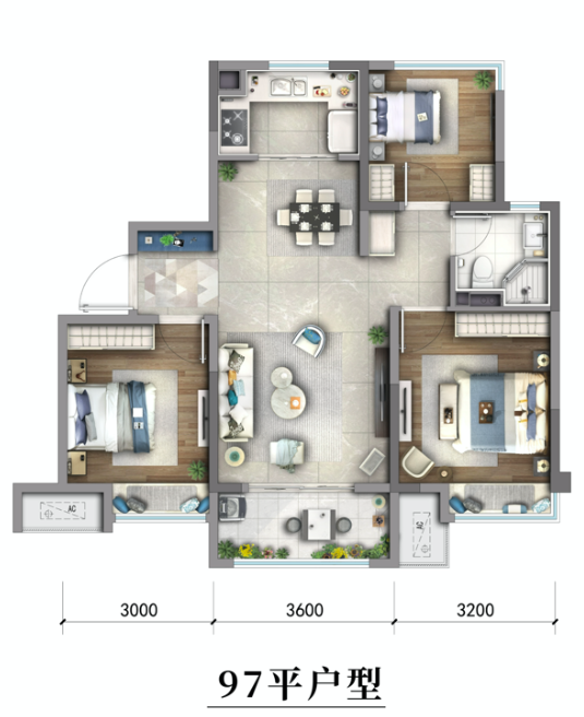 户型全明方正,南北通透双飘窗,饱览阳光与清风;一梯两户,三室户型设计,享超高得房率;南向双卧,采光丰沛,宽享人生大境;U型厨房设计,餐客一体,生活料理井然有序。