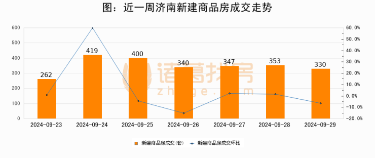 【济南成交日报】09月29日新房成交330套;涨价房源24套