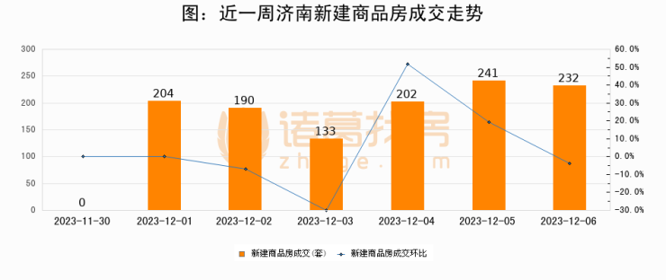 【济南成交日报】12月06日新房成交232套;涨价房源50套