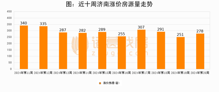 从调价房源来看,第19周济南涨价房源278套,较上周上涨10.8%。与此同时,19周涨价房源占比回落0.37个百分点,业主信心小幅波动,购房者可则需入市。