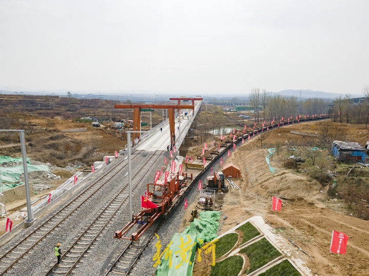 3月31日上午,在济莱高铁大崮山隧道施工现场,全国首条市域高铁——济莱高铁铺轨施工正式启动。