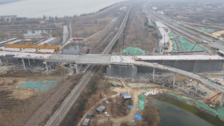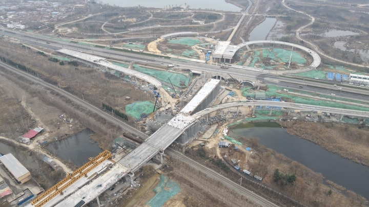 济南新旧动能转换起步区较大互通立交桥成功穿跨邯济线
