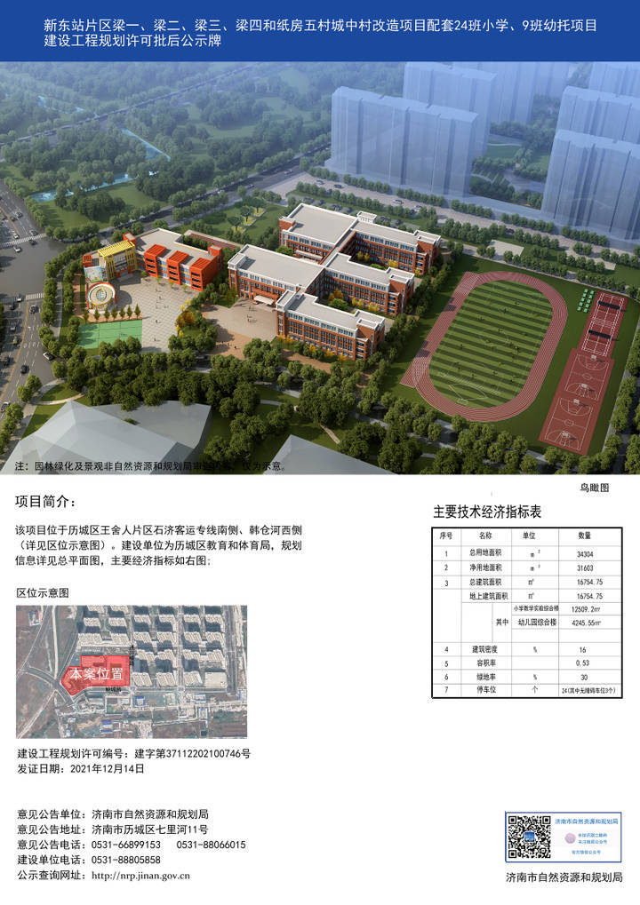 近日,济南市自然资源和规划局发布新东站片区梁一、梁二、梁三、梁四和纸房五村城中村改造项目配套24班小学、9班幼托项目建设工程规划许可批后公示。这意味着该片区即将新增一所小学,一所幼托。