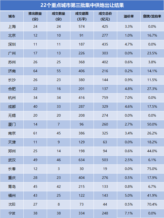随着宁波集中供地的落幕,22个试点城市全部完成了第三批集中供地。