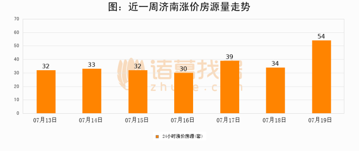 根据诸葛找房数据显示,济南24小时涨价房源量为54套,较07月18日增加20套,环比上涨58.8%。与此同时,涨价房源占比小幅扩大,业主信心有所提升。