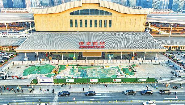 济南西站西广场局部封闭施工 取消停车位改5条单行车道