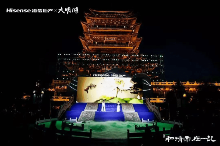 如2019年,海信地产择址江北排名前列楼——大明湖超然楼举办新品发布会,以“和济南在一起”为题,演绎了一场古典与现代优质融合的视听大观,海信地产济南区域七大新品,在一场文化盛宴中与泉城相见。