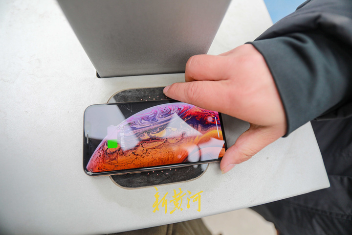 “一键报警上方的卡口,为USB充电功能,可以缓解市民们手机没电时的焦虑”,吕工称,就算没有随身携带数据线,也可以利用上方的无线充电台。“充电台采用了快充技术,一个小时内就可以将手机的电充满,且台面材料防水、耐高温,市民们在夏天也不用担心充电问题。”
