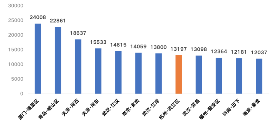 据CRIC统计,房地价差较高的区域多集中在东部沿海城市的核心区域,比如厦门湖里、青岛崂山、杭州滨江、拱墅、南京玄武、建邺等。这些区域虽然地价较高,但房价同样也处于较高水平,房地差也往往比较大,基本都在1万元/平方米以上。