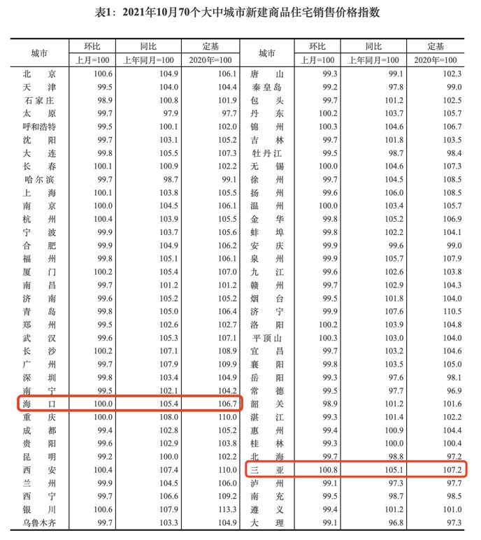 海口则由于10月的新房价格环比持平,刹停了连续16个月的上涨。