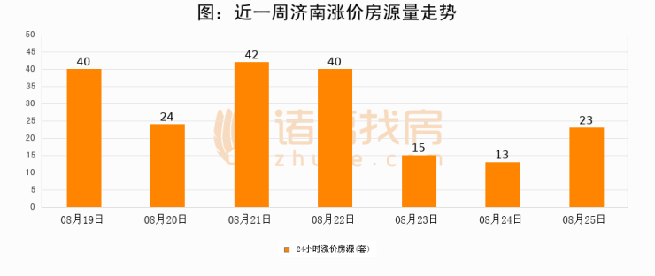 根据诸葛找房数据显示,济南24小时涨价房源量为23套,较08月24日增加10套,环比上涨76.9%。与此同时,涨价房源占比小幅扩大,业主信心有所提升。