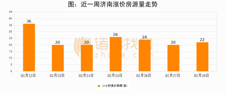 根据诸葛找房数据显示,济南24小时涨价房源量为22套,较02月27日增加2套,环比上涨10%。与此同时,涨价房源占比小幅扩大,业主信心有所提升。