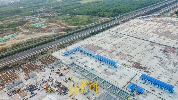 5月24日,在刘长山路中段以北,原王府庄村以西,这里是济南轨道交通2号线的王府庄段,巨大的车库内部是地铁列车停放、检查、整备、运用和修理的管理中心所在地,车库的顶部预留了密密麻麻的钢筋结构,同时还建有进入车库顶部的匝道。