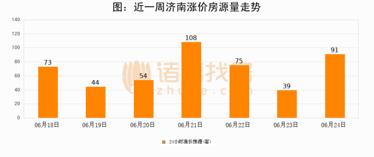 根据诸葛找房数据显示,济南24小时涨价房源量为91套,较06月23日增加52套,环比上涨133.3%。与此同时,涨价房源占比小幅扩大,业主信心有所提升。