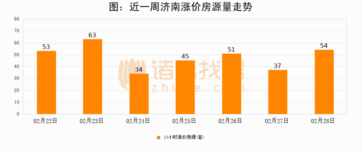 根据诸葛找房数据显示,济南24小时涨价房源量为54套,较02月27日增加17套,环比上涨45.9%。与此同时,涨价房源占比小幅扩大,业主信心有所提升。