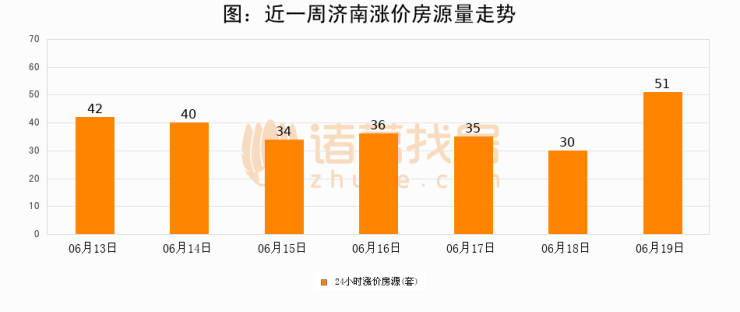根据诸葛找房数据显示,济南24小时涨价房源量为51套,较06月18日增加21套,环比上涨70%。与此同时,涨价房源占比小幅扩大,业主信心有所提升。