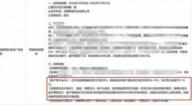 近日,记者从相关方面获取的信息显示,新城地产在山东各个城市均有项目参加,其中青岛市的新城红岛湾,云樾晓院,新城悦隽公园里,新城悦隽大都会四个项目,均使用了所谓的“B类促销”由第三方代为支付首付。位于青岛平度的悦隽大都会项目,购房者实际支付的首付比例仅为10%,远远低于当地要求的30%的首付比例;日照新城翡翠之光,购房者实际支付自付首付比例为10%-14%;淄博周村区的新城悦隽江山,当地按揭最低首付比例20%,使用“B类促销”,客户真实自付比例为7%;而淄博周村新城吾悦广场项目、东营吾悦广场项目、烟台芝罘吾悦广场项目住宅首付比例更是达到了惊人的5%,远远低于淄博、东营两地首套房首付20%和烟台首套房首付30%的要求。