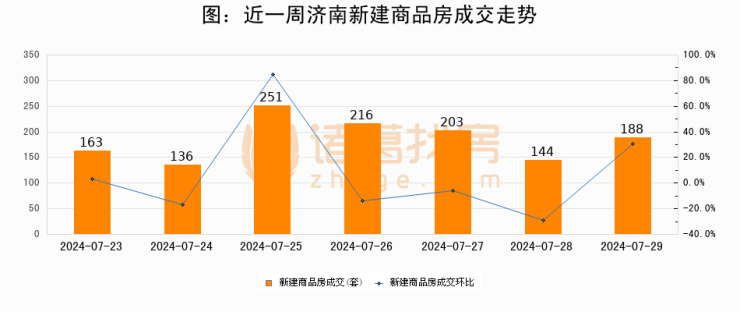 【济南成交日报】07月29日新房成交188套;涨价房源33套