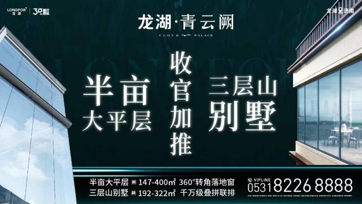 龙湖·青云阙,鼎立济南旅游路,富人区新极。世界自贸区、千亿科创产业群、城市级文旅商圈环伺。1.2容积率天赋生态,对望约8000亩蟠龙山城市绿肺,推窗见林全植被覆盖,群山环抱巨幕观山。旅游路 建面约147-400㎡半亩大平层,360°转角巨幕落地窗,九层洋房大平层,最后2栋高光热映,收官加推塔尖封藏!建面约192-322㎡三层山别墅,爱马仕黑奢雅园林,库里南钻幕超大落地窗,全南向超大居室,限量塔尖臻位,值此一席入青云!