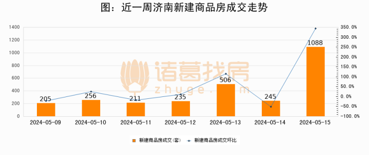 【济南成交日报】05月15日新房成交1088套;涨价房源32套