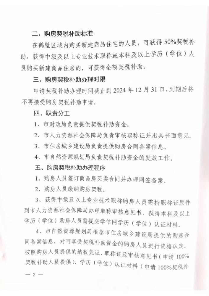 鹤壁4部门发文!买房发放契税补助,本科及以上学历全额补助