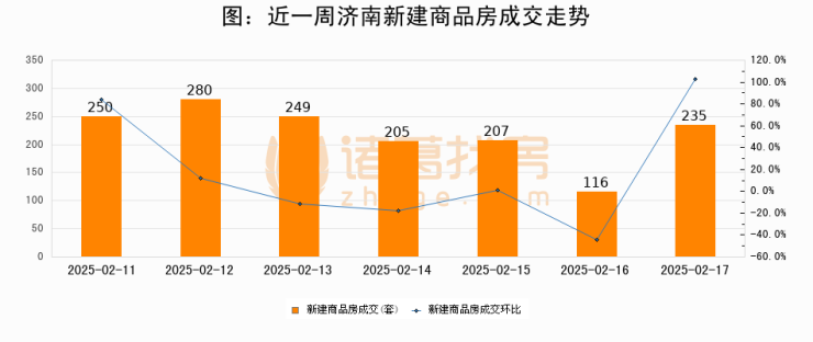 【济南成交日报】02月17日新房成交235套;涨价房源25套