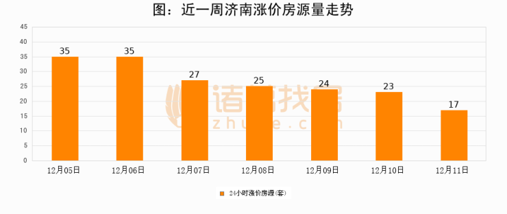 根据诸葛找房数据显示,济南24小时涨价房源量为17套,较12月10日减少6套,环比下降26.1%。与此同时,涨价房源占比小幅回落,对于购房者来说是一个入市窗口期,购房者可抓住时机入市。