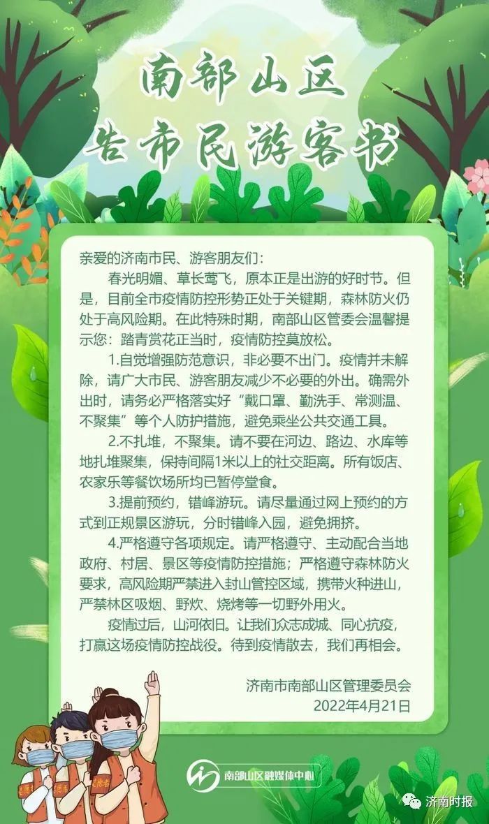 济南市南部山区管委会发布告市民游客书