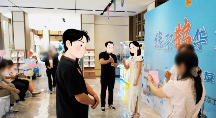青年男女心动相聚,E人I人的破圈行动甜蜜来袭,趣味性拉满的“听歌识曲”、考验默契的“抓娃娃”、紧张刺激的“击鼓传花”、笑声不断的“你演我猜”、斗智斗勇的“我有你没有”等轻松有趣的互动游戏,精彩的分组对抗,将现场气氛一度推向高潮。欢声笑语中,青年们放下拘谨,展现真我,智慧碰撞、协作互助间,陌生的隔阂被打破,欣赏的目光在交流中流转,现场弥漫着青春洋溢的浪漫气息。