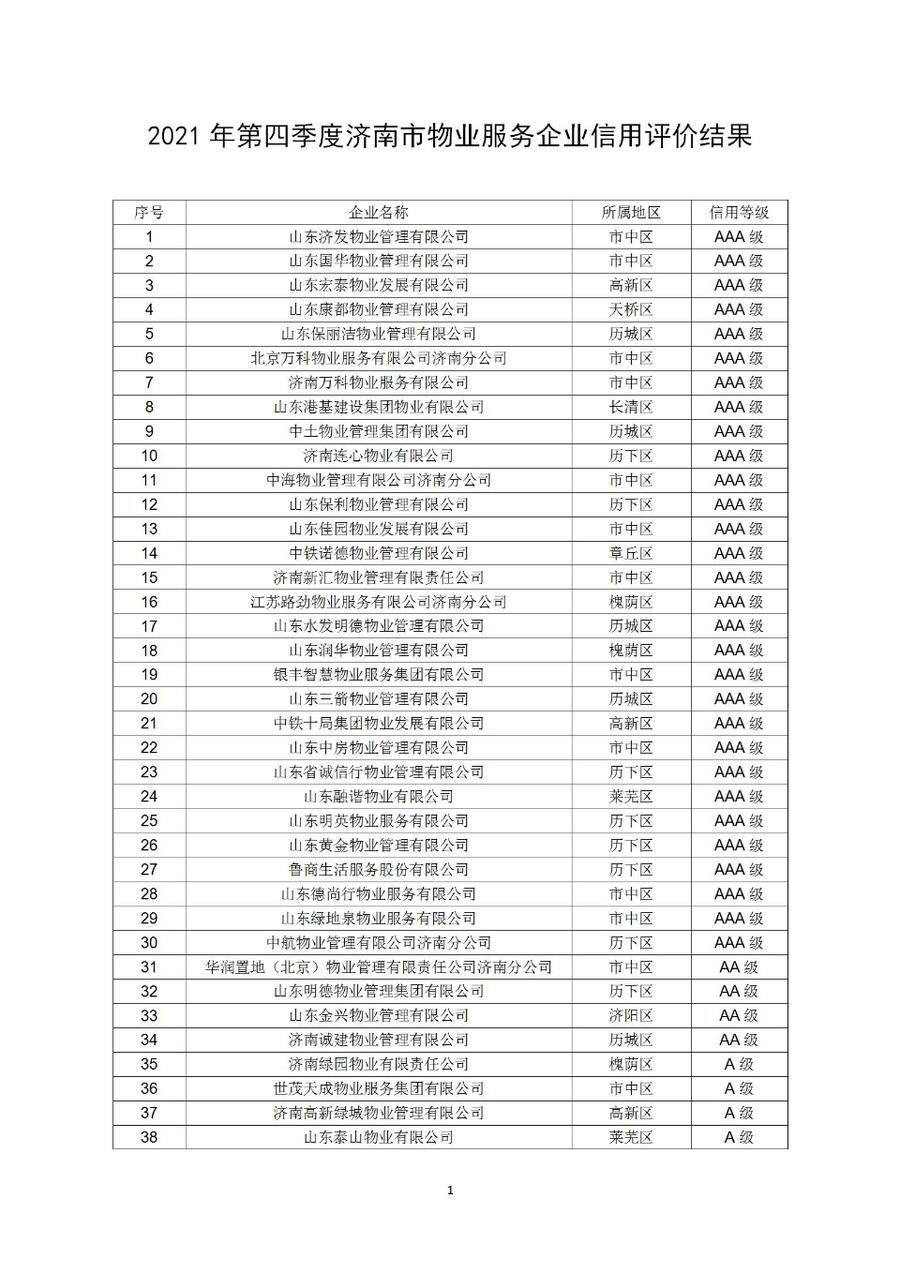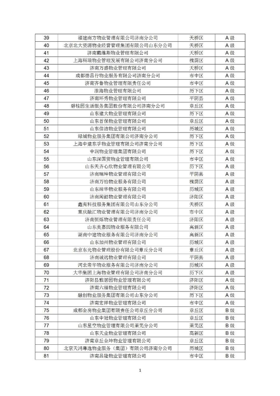 济南较新物业企业信用评价结果来了!看看你家物业是啥等级?