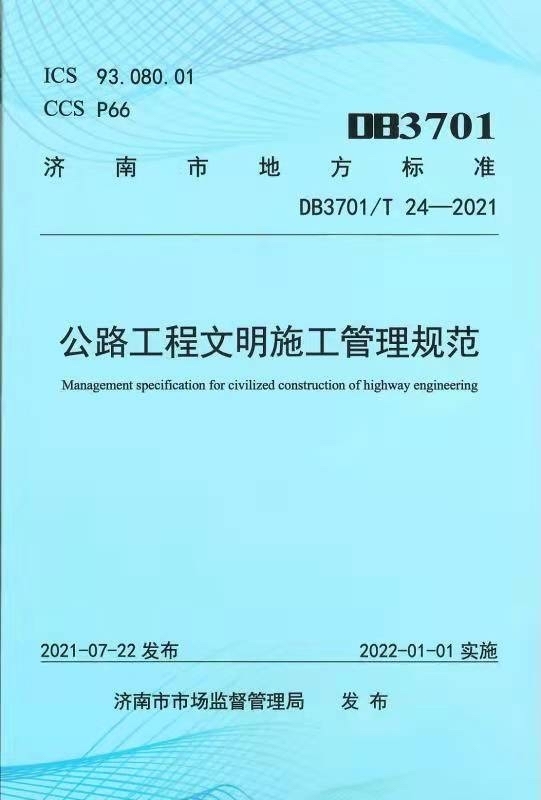 12月30日,济南市城乡交通运输局发布消息,济南市地方标准——《公路工程文明施工管理规范》(DB3701/T24-2021)将于1月1日起正式实施。