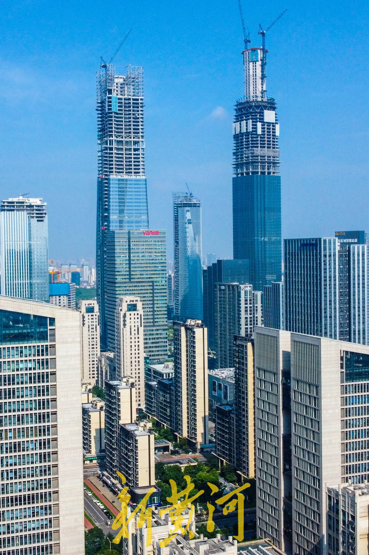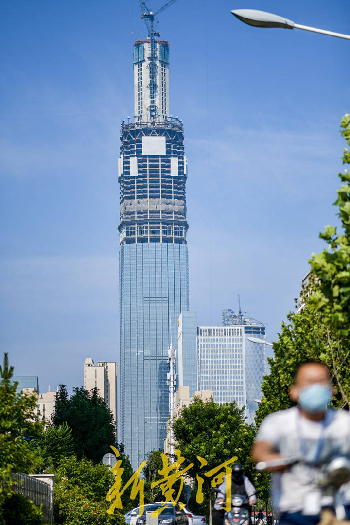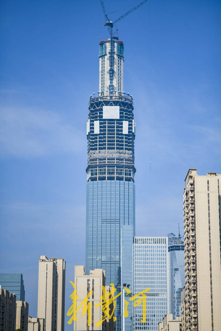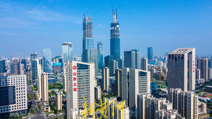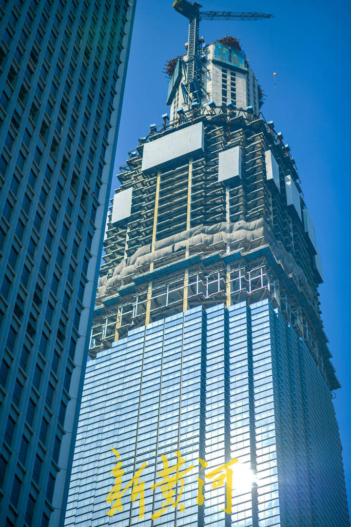 “山东排名前列高”拆除顶部造楼机 四周钢结构开始“冲顶”