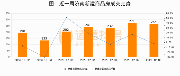 【济南成交日报】12月08日新房成交265套;涨价房源39套