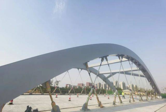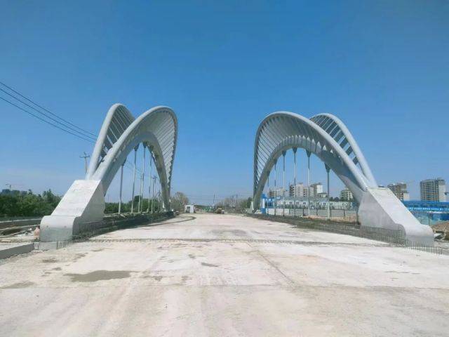 一桥一景,济南起步区两座系杆拱桥桥梁主体完工