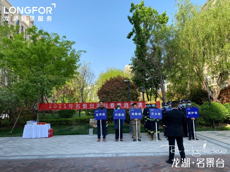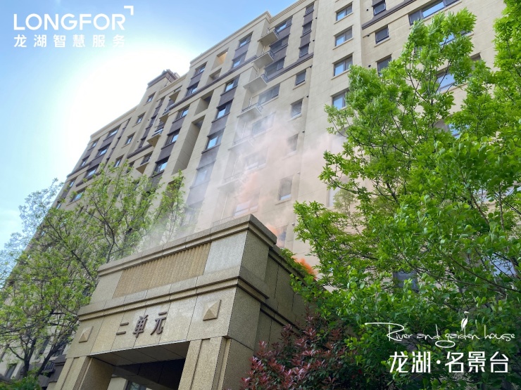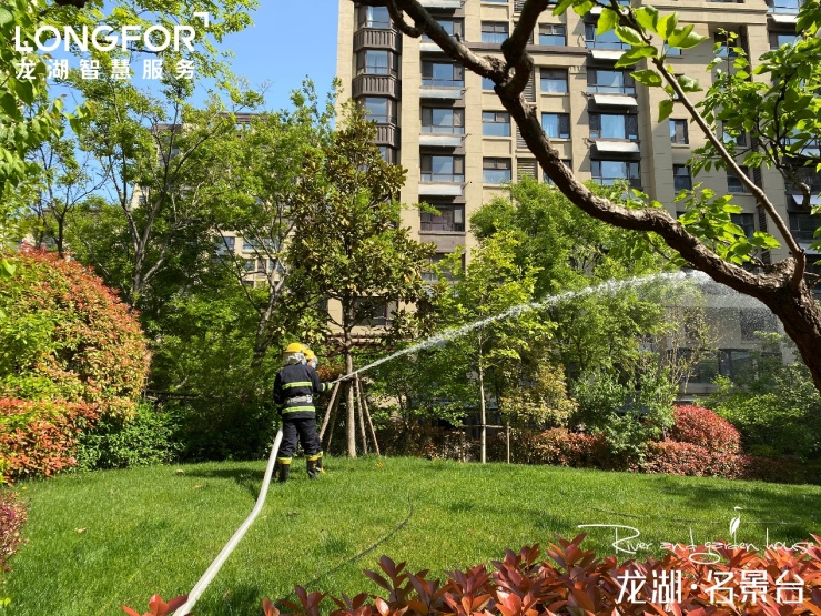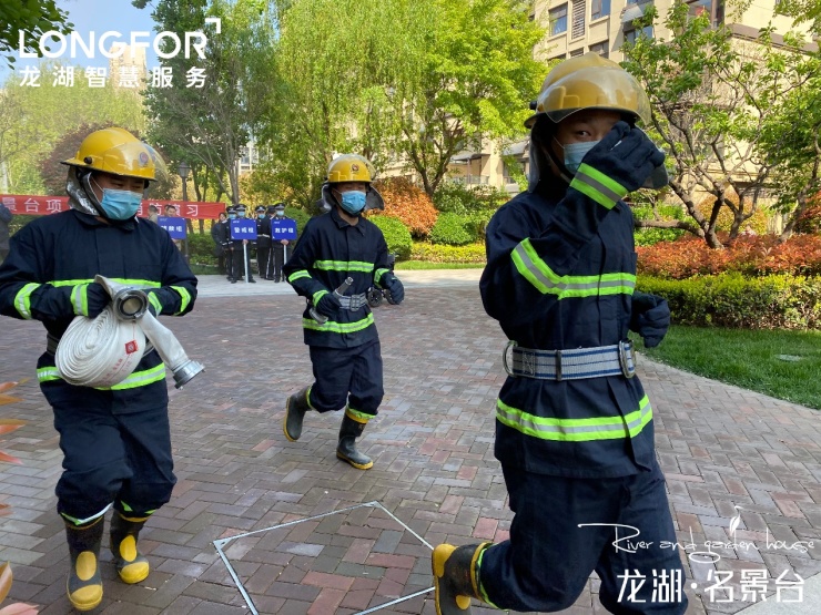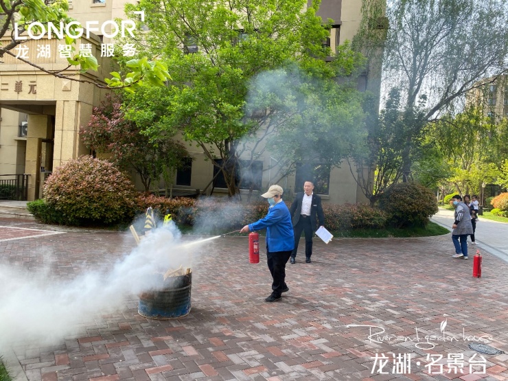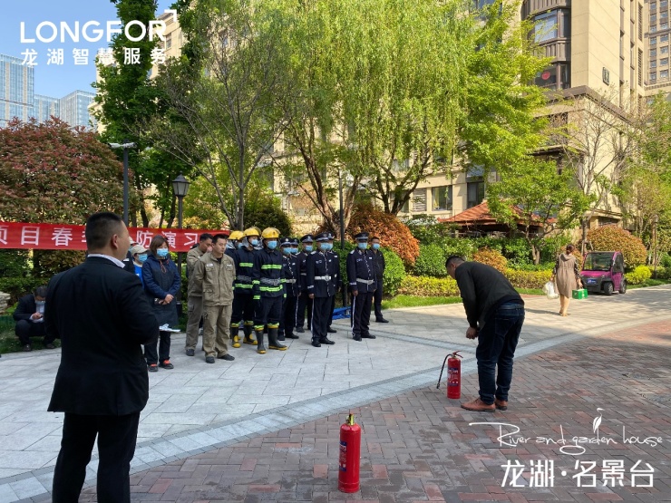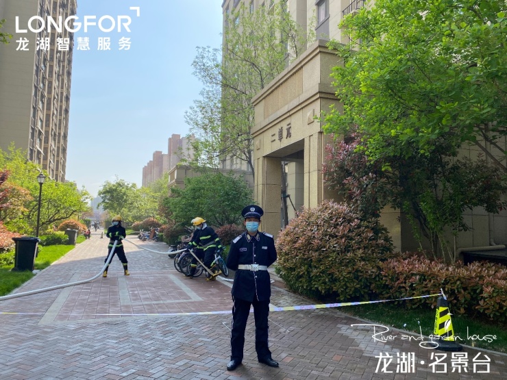 同时,就在4月12号,龙湖·名景台组织全员开展了消防演习活动,从发现火情-疏散人群-紧急处置等全流程演练,通过反复习演,不断提高物业团队的消防能力与消防意识,不断总结,只为在时刻保障业主的生命财产安全,在龙湖住的安心、舒心、放心、